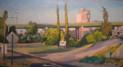 Even industrial realty can be yours, just for the poaching. Make many visits (in this case, a dozen) to a site at approximately the same time of day. This was the "magic hour" late Summer, West Sacramento, 1996. By the time this oil painting (12" x 24") was finished, I felt completely at peace with these surroundings. I knew that no other mortal had stood exactly there and watched patiently for the subtle changes of light and color that the sinking sun brought to that little corner of the world. The following year, this painting won an award at the California State Fair, where I was the official sign painter during the late '80s.